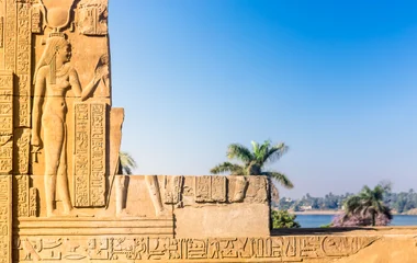 Chacun honore une divinité : le temple sud est dédié au dieu faucon, Horus, dieu solaire, symbole divin de la royauté, et le temple nord, au dieu crocodile, Sobek, dieu de la fertilité. La construction du temple de Kôm Ombo aurait débuté sous le règne de Ptolémée XIII. Son lieu a été choisi pour des raisons stratégiques : le temple se trouve sur les anciennes routes qui menaient aux gisements d’or de la Nubie.