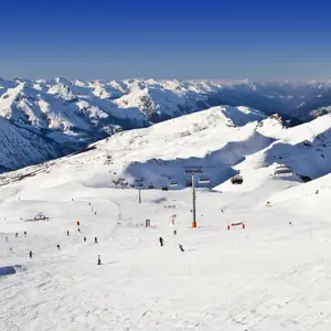 « Une de mes pistes bleues préférées sur le domaine d'Orelle, c'est Peyron », raconte Ashley. « C'est une pente large et sinueuse parfaitement damée. Non seulement elle est longue et facile mais elle offre aussi des panoramas époustouflants sur la vallée de la Maurienne vers l'Italie. La cuve est ensoleillée et protégée, et le Peyron est une jolie piste bleue facile à parcourir – à la fois longue et clémente. »